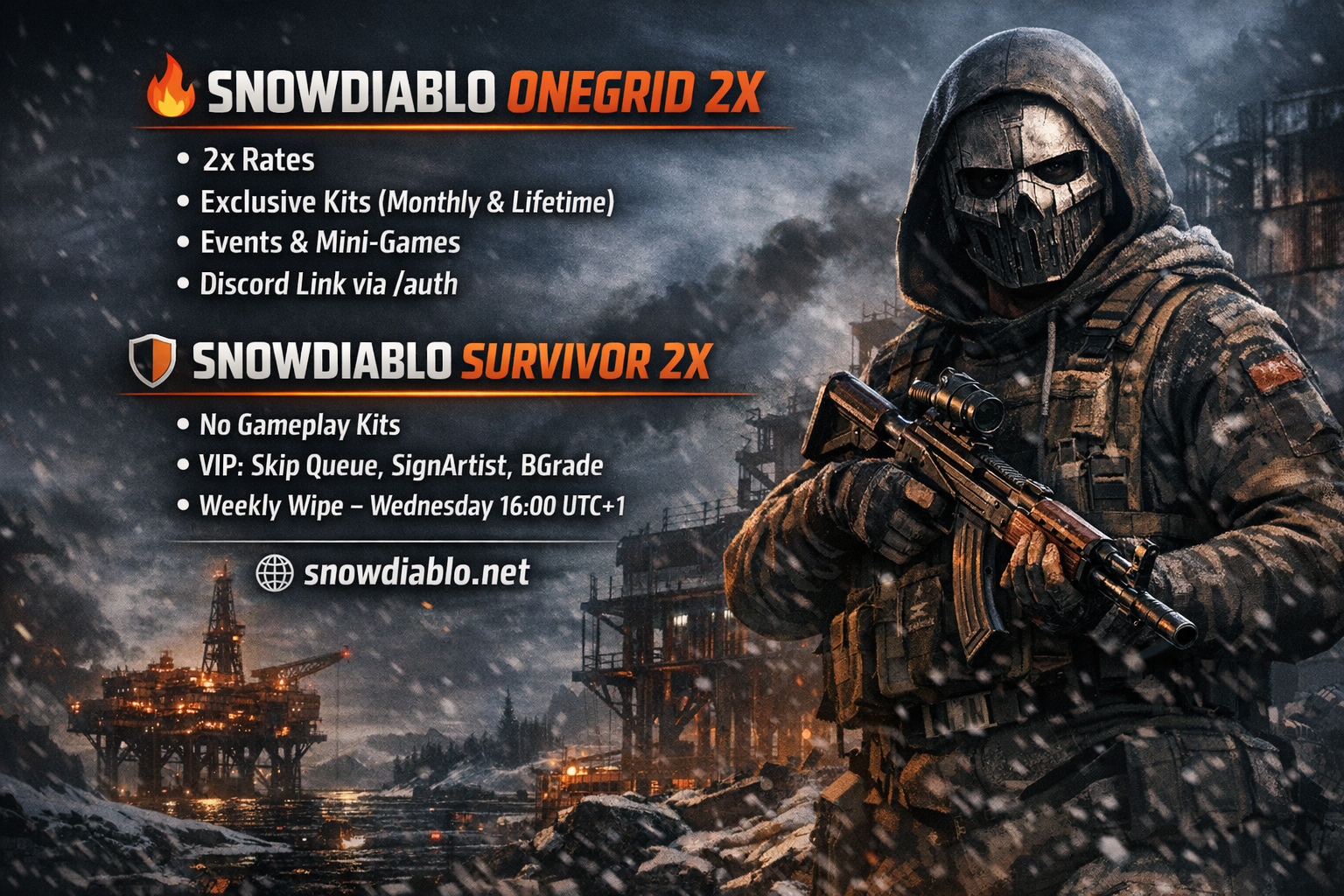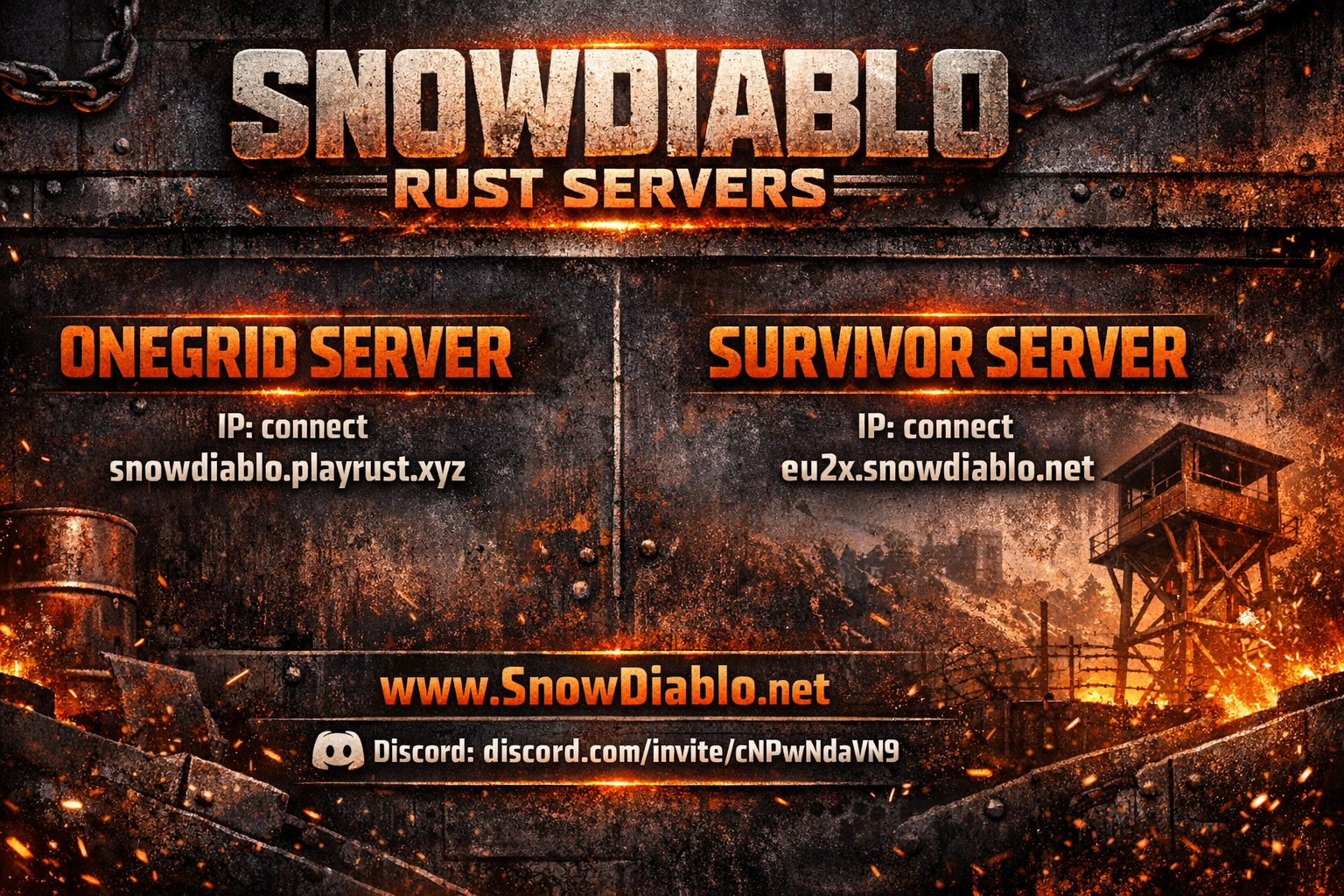 🔥 SNOWDIABLO SURVIVOR – NEW RUST SERVER 🔥Connect: connect snowdiablo.playrust.xyz Looking for a balanced, competitive, and active Rust experience?S...